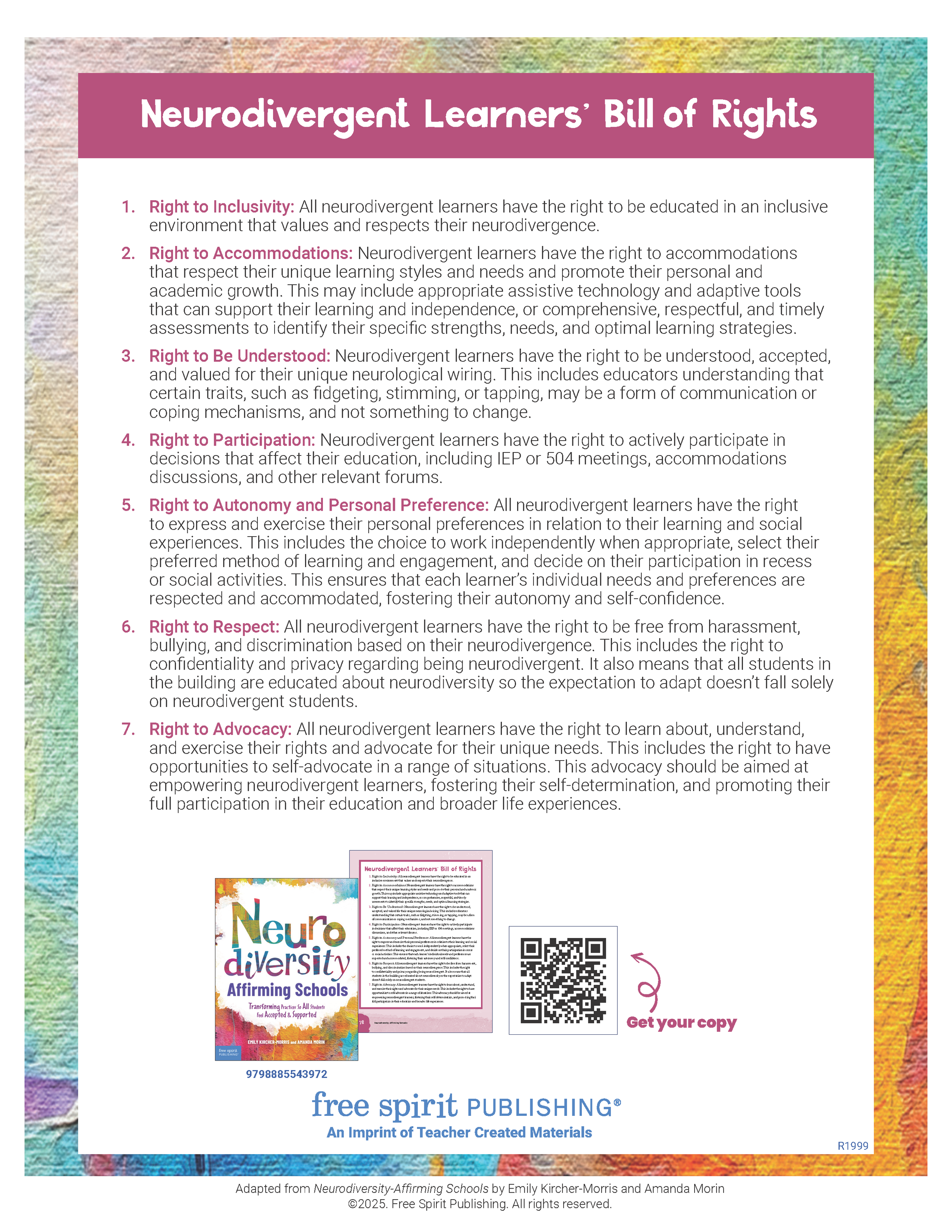 Every neurodivergent learner deserves to feel seen, supported, and respected in their educational journey. This Bill of Rights affirms their right to: